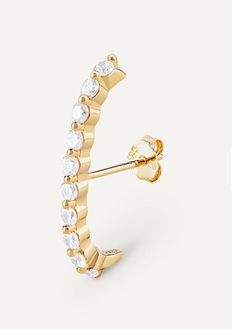 Cette boucle d'oreille minimaliste, proposée en argent 925 ou dorée à l'or 24 carats, ajoute une touche d'élégance discrète à votre style. Elle est sertie de pierres de zirconium scintillantes pour une brillance subtile. Conçue pour être portée verticalement sur le lobe, elle offre un look raffiné et moderne, parfait pour une allure chic sans effort. Idéale pour un usage quotidien ou pour sublimer vos tenues de soirée.